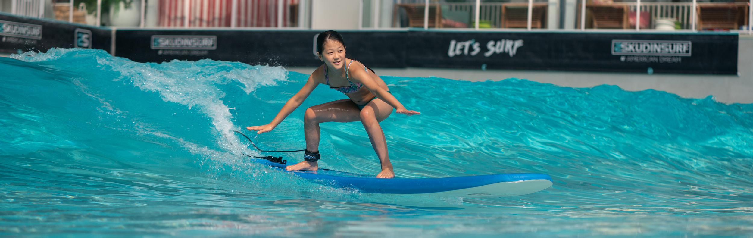 Step into a tropical oasis featuring the world’s largest indoor wave pool. Skudin Surf offers world-class waves in warm, crystal-clear water. Whether you’re finding your balance or carving a line, our consistent environment is tailored to your journey.